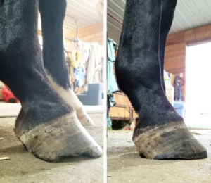 My horse’s rear left foot was turned slightly outwards. Although it wasn’t causing her any pain or issues with movement, I knew it wasn’t normal for a horse’s leg and foot to be twisted outward. Alicia has only given my horse around 5 trims and I’ve seen a tremendous difference in my horse’s feet. Her rear foot is already more stable and in line with her other feet and they are much healthier overall within a matter of months. Not only has Alicia helped my horse, but she has also helped me with my knowledge about my horse’s feet. She has always made me happy and comfortable at my horse’s trims, which is what makes a good farrier a great farrier, in my opinion. Overall after seeing the difference in my horse and how much healthier she is, and getting to know Alicia and how she cares for horses and wants the best for them and their owners, I am a very happy client!