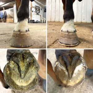 Commitment to a consistent hoof care schedule, that is best for the individual horse, is vital. The cycle is continually reevaluated as the horses and hooves become healthier.